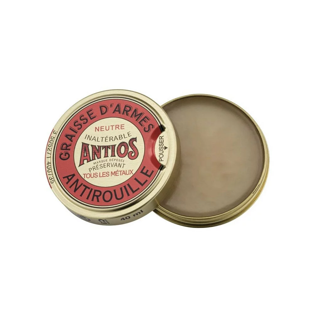 La graisse Antios a spécialement été conçue pour l’entretien extérieure des armes, elle les protège de l’humidité leur évitant ainsi l’oxydation. Boite de 40ml.