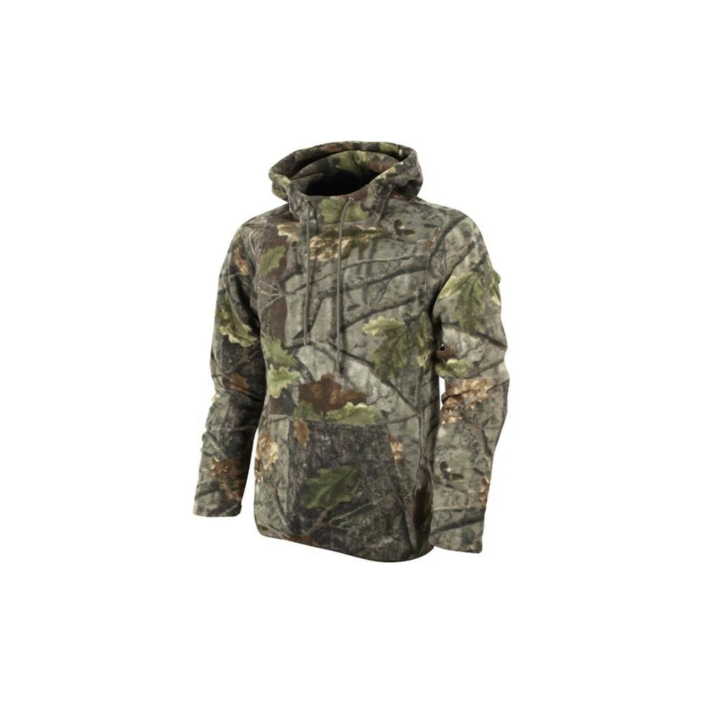 Sweat entièrement conçu en polyester polaire de 250 g et imprimé d’un motif de camouflage bois.