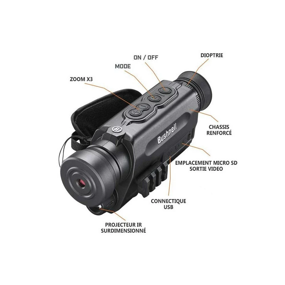L’appareil à vision nocturne nouvelle génération de Bushnell permet une observation nocturne de la faune jusqu’à plus de 190 mètres. Grâce à son puissant illuminateur infrarouge intégré, l’observation est possible sans être détecté. L’appareil Bushnell Equinox X650 dispose de fonctions d’enregistrement photos et vidéos qui seront stockés sur la carte micro-SD incluse. Le monoculaire à vision nocturne Bushnell Equinox X650 dispose d’un zoom numérique de 3x qui s’additionne au grossissement natif de 5x. Il fonctionne à l’aide de trois piles AA pour une autonomie de 6 heures.